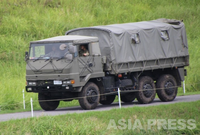 待機していた自衛隊員らがホースを手に燃料を給油すると、ヘリは地響きのようなローター音をうならせて飛び立っていった。自衛隊の迷彩色のトラックやジープ型車両なども演習場をひんぱんに出入りした。