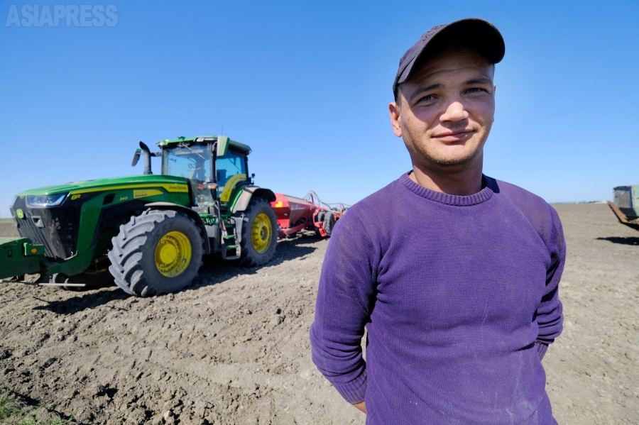 2か月前に爆発物の除去が済んだ畑で、ひまわりの種まき作業をしていたデニスさん(28歳)は「これで安全に農作業が再開できる」と喜んだ。(2024年5月・ヘルソン州ポサド・ポクロフスケ村・撮影・玉本英子)