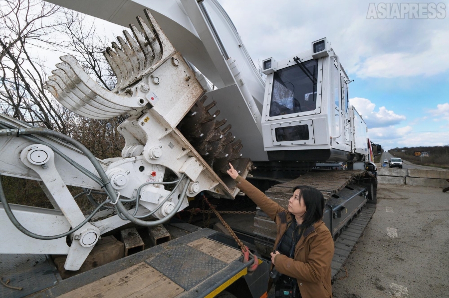 今年4月、ウクライナ北部ハルキウ州イジュウム近郊に、日本から送られた地雷除去機の車両(BM307-V35)があった。日本のメーカー、日建(NIKKEN・本社 山梨県)が紛争地の地雷除去車両として開発したものだ。
