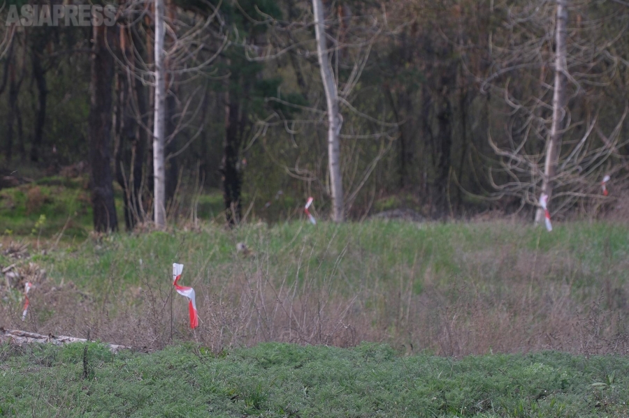イジュウムは、一時、ロシア軍に占領され、激戦ののちウクライナ軍が奪還した地域だ。建物の破壊の爪痕が生々しい町には、一部ながら住民が戻ってきていた。だが、周辺の道路の側道や茂みでは、まだ爆発物未処理を示す赤・白の規制テープが張られたままの区域が目立つ。非常事態庁は、日本の支援で送られたた地雷除去機を投入し、爆発物・地雷の撤去を進めている。