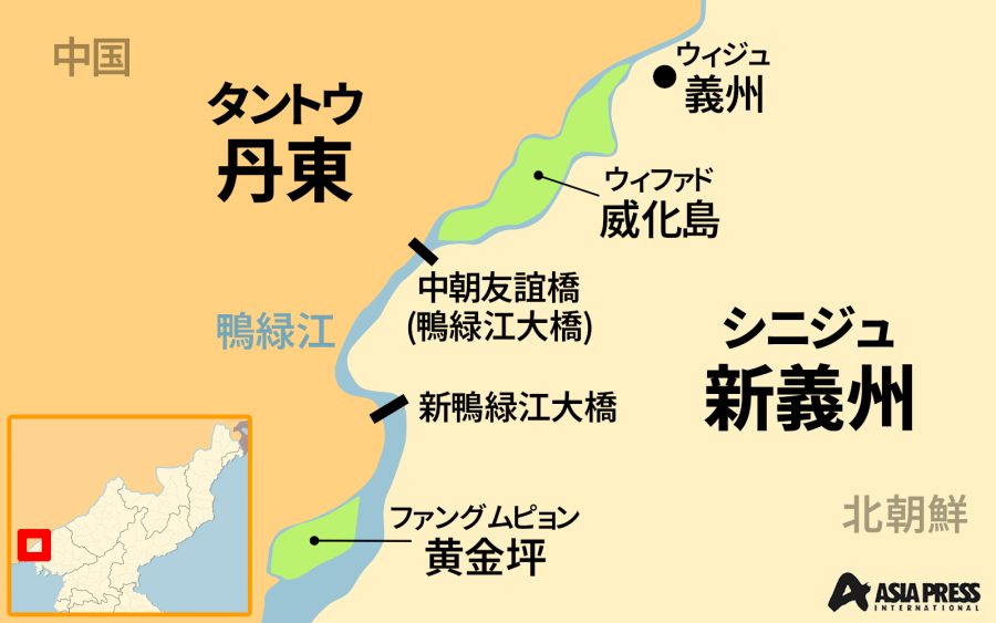 この1年で様変わりした北朝鮮北西部地域。昨年7月末の集中豪雨で一帯が大浸水した鴨緑江下流の平安北道(ピョンアンブクト)新義州(シニジュ)市威化島(ウィファド)には、今や新築アパートがずらりと立ち並ぶ。取材チームは今年9月に現場を訪れた。対岸の中国・丹東市からの光景は壮観だが、遠目には住民の姿が見えず、無機質な印象も与えた。しかし超望遠カメラを向けると、ベランダで洗濯物を干す女性や未だ継続中の堤防工事に動員された若い軍人など人の息遣いが伝わってきた。現場の人々にフォーカスを当てた。(アジアプレス編集部)