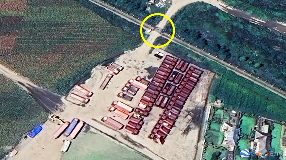グーグルアースの最新衛星写真を分析した結果、朝中国境の鴨緑江上流での車両密輸は極めて大規模であることが分かった。密輸ポイントは20カ所以上に上ると見られる。掘削機などの大型重機で川を横断する道を作り、川の中洲に大きな拠点を構築していた。(チョン・ソンジュン)