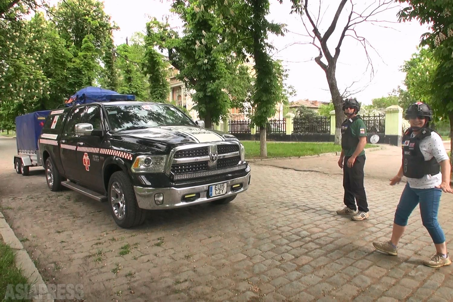 黒塗りのピックアップトラック、ダッジ・ラム1500は、医薬品、食料、衣料を満載したトレーラーを牽引し、ザポリージャ南部のオリヒウを目指して幹線道をひた走っていた。町にはロシア軍が迫り、激しい砲撃にさらされている。現在、ともに60歳のダーソー夫妻が、二人だけのボランティアを始めたのは、2022年。侵攻直後に開始し、これまでにポーランド国境とウクライナ国内で10回におよぶ活動をおこなった。