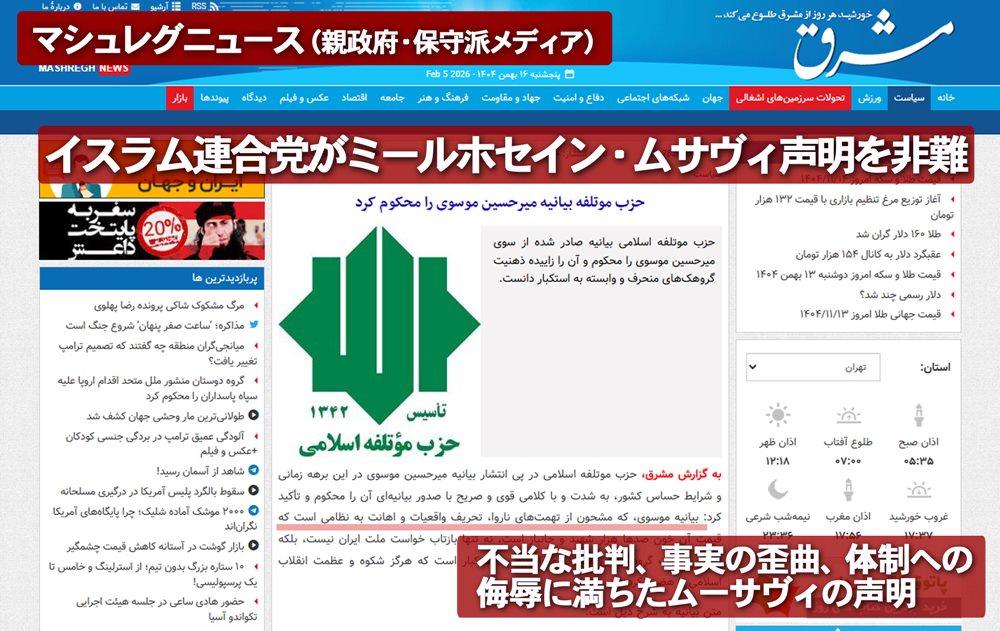 キャッルービー師はかつて国会議長を務め、2009年の騒乱の首謀者の一人としてムーサヴィ氏とともに逮捕・拘束されたが、2025年3月に軟禁を解かれている。最高指導者ハーメネイー氏を名指しで非難するこの声明は今後、さらなる物議をかもすことだろう。