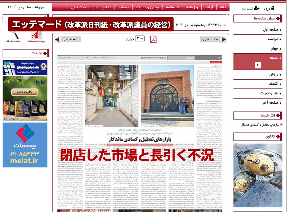 エッテマード紙は同じルポの中で、「100万トマン(※自由レートで1000円程。公定レートで3500円程。国民1人に4か月間支給すると発表された政府補助金)で抗議活動が鎮まるとでもいうのか。100万トマンでは米5キロも買えない。たまご1ケースが45万トマン(約450円)に達し、貧困層の食卓から消えてしまった。人々が抗議活動をしないわけがない」と市民の言葉を伝えた。