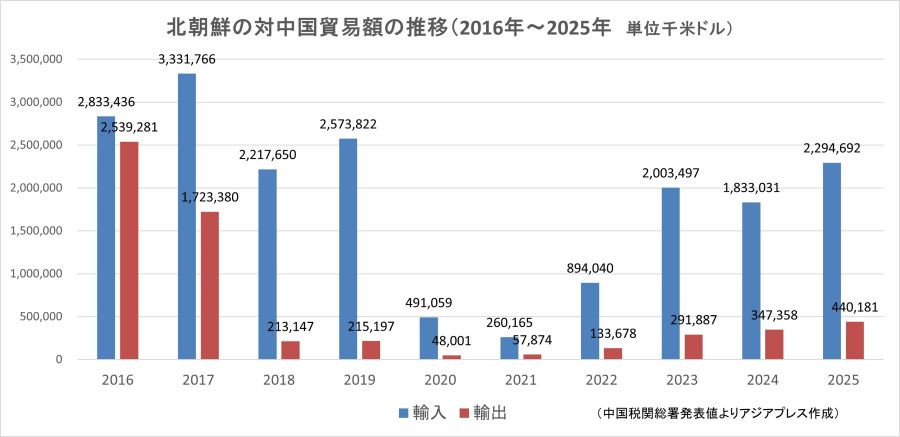 今年に入り、北朝鮮政府は中国にも女性労働者を積極的に送り出している。貿易の95%以上を占める中国との貿易赤字は、2025年は18億5451万ドルに膨れ上がっており、中露への労働者派遣でその穴を埋めたいというのが、金正恩政権の目的だと考えられる。