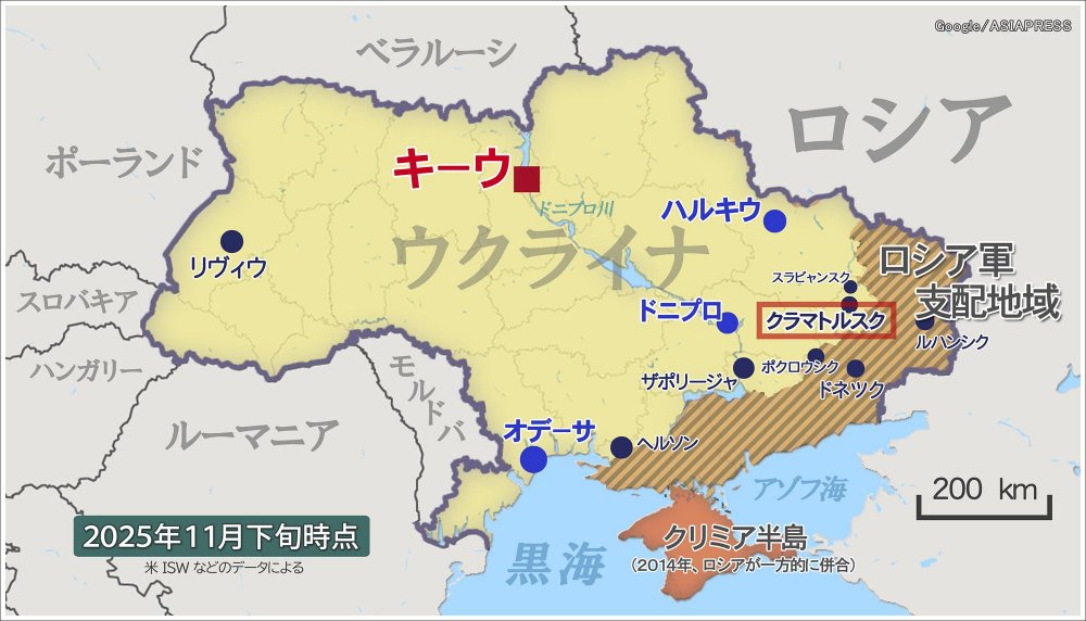 前線に近い地域では、ロシア軍が15~20キロに迫ると、軍政局から子どもの退避指示が出される。17歳以下の子どもは保護者と別の町に避難することが求められる。戦況や複数の要素から指示の発令が判断されるが、その目安の一つが、小型の自爆攻撃ドローンの航続距離だ。ロシア軍が20キロ圏内に迫ったクラマトルスクでは、10月に子どもの避難指示が出た。だが、まだ家族とともに残っている子どももいるため、学童園は運営を続けている。