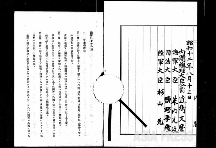 2.軍事機密の指定権者を『陸海軍大臣が命令を以て定む』として、軍による専権化を明