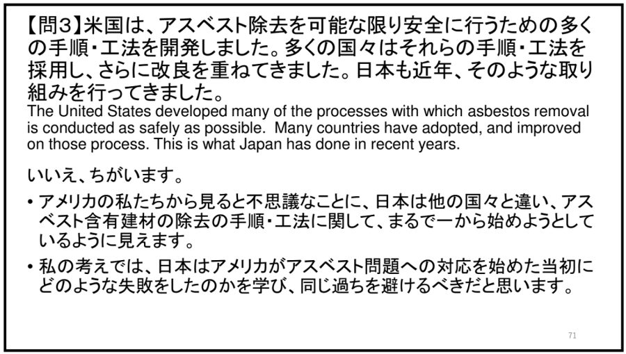 【関連資料】日本のアスベスト対策のおかしな部分をクイズで指摘。設問と解答、集計結果