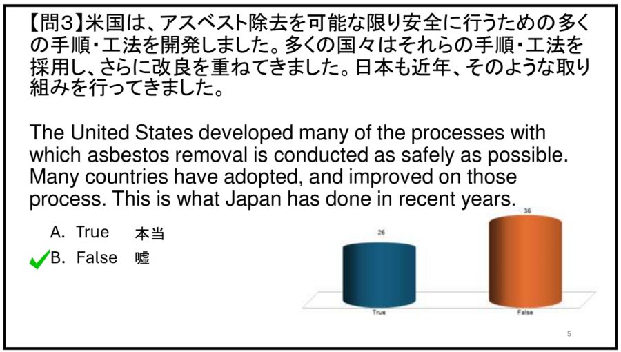 【関連資料】日本のアスベスト対策のおかしな部分をクイズで指摘。設問と解答、集計結果