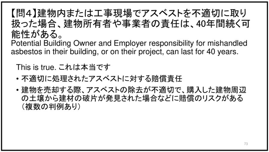 【関連資料】日本のアスベスト対策のおかしな部分をクイズで指摘。設問と解答、集計結果
