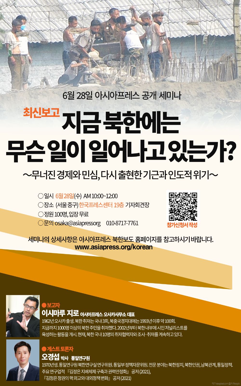 '코로나 쇄국'에 의해 외국과 왕래하는 사람은 끊기고, 우편은 엽서 한 장조차 주고받지 못하는 상황이 이어지고 있다. 지난 3년여 동안 방북한 외국 미디어는 제로. 미증유의 정보 사각지대가 돼 버린 북한 내부는 어떤 상황일까? 아시아프레스에서는 북한 국내 취재 파트너와 함께 조사·보고해 왔다.