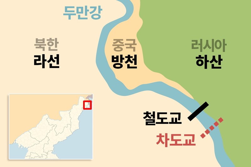 우크라이나 침공을 계기로 북한과 러시아의 밀착은 사실상의 새로운 군사 동맹 관계로 발전했다. 북·러 양국은 공사 중인 자동차 다리를, 노후화된 기존 철도교를 보완하는 전략적 동맥으로 삼으려 할 것이다. (이시마루 지로)