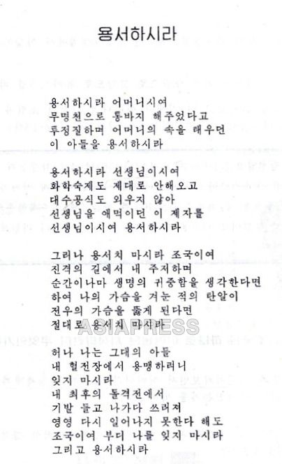 첫번째 시 「용서하시라」를 요약하면 다음과 같다.