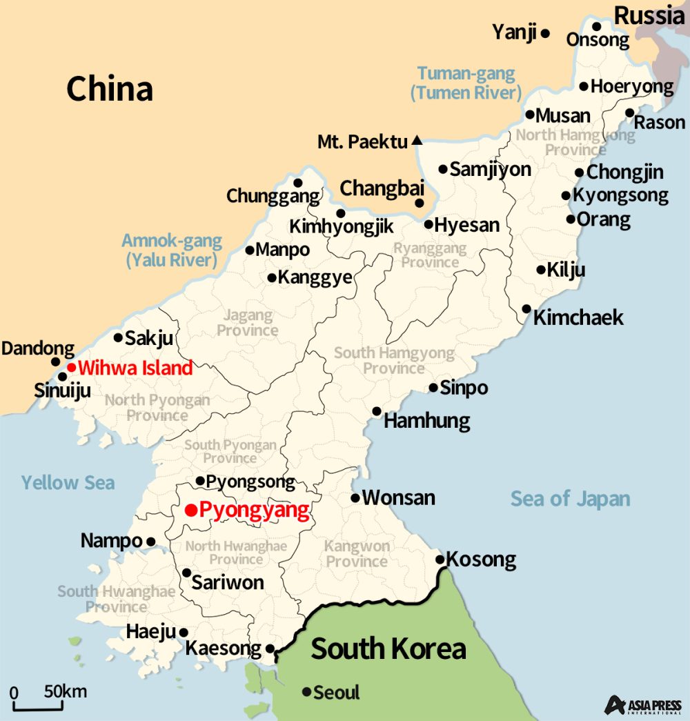 *All photos are of Wihwa Island, Sinuiju, Pyongan Province. Photographed from the Chinese side in September 2025 (ASIAPRESS)