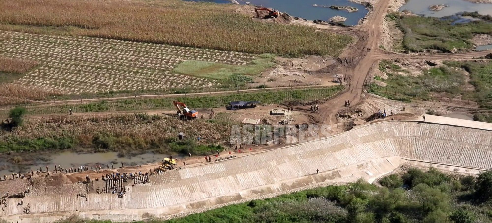 Embankment construction continues even now. Looking into the construction site, large numbers of young soldiers had been mobilized, laying concrete blocks one by one on slopes and attaching them with mortar.
